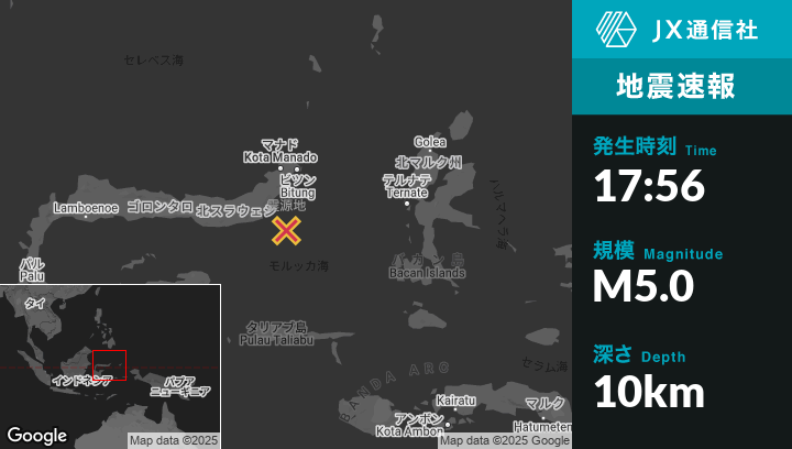 | 震源地 | インドネシアのModisiから東59kmの地点 |