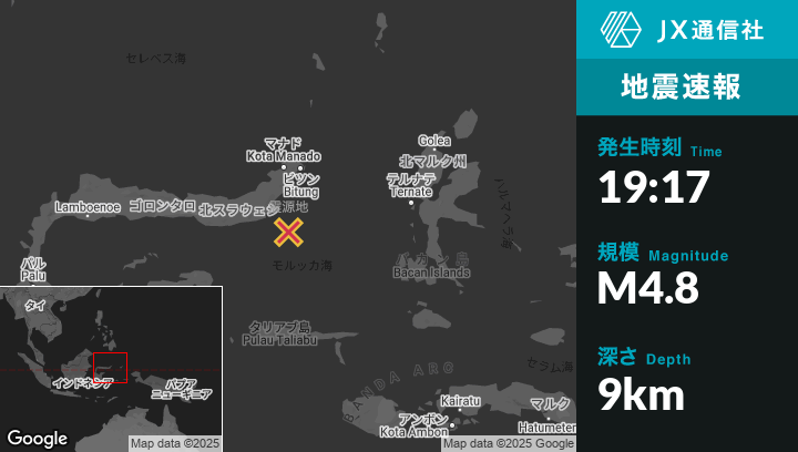 | 震源地 | インドネシアのModisiから東南東58kmの地点 |