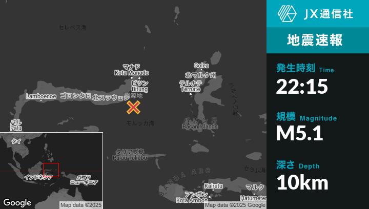 | 震源地 | インドネシアのModisiから東南東55kmの地点 |