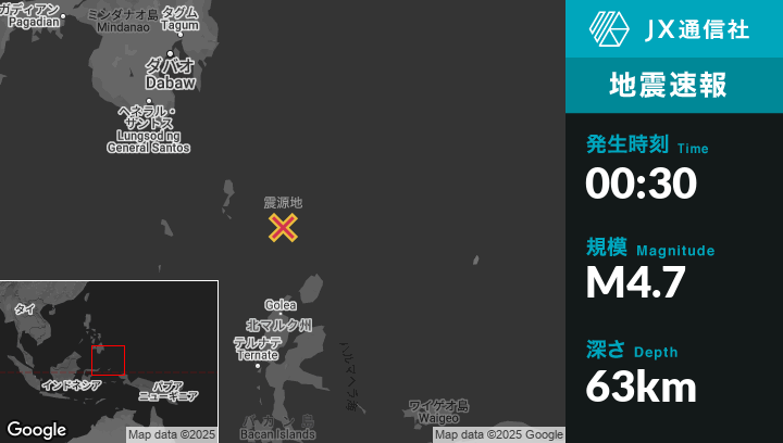 | 震源地 | インドネシアのTobeloから北217kmの地点 |