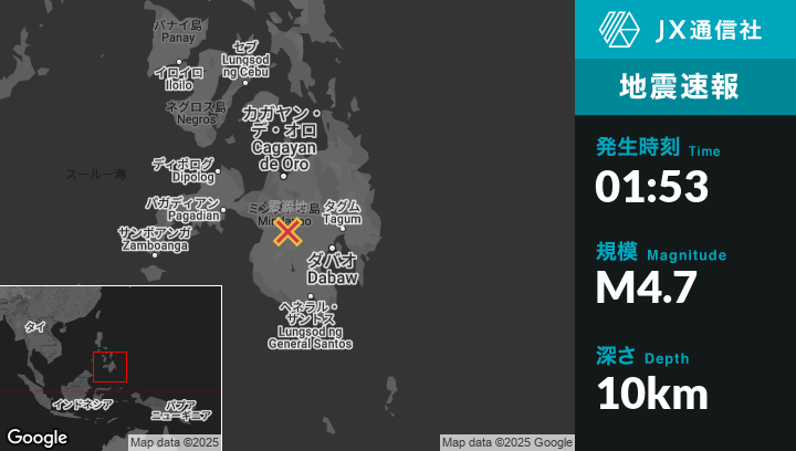 | 震源地 | フィリピンのBanisilanから北北西3kmの地点 |