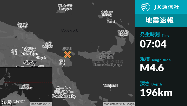 | 震源地 | パプアニューギニアのFinschhafenから北北西114kmの地点 |