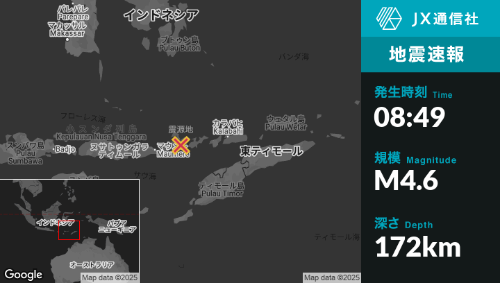 | 震源地 | インドネシアのMaumereから東北東94kmの地点 |