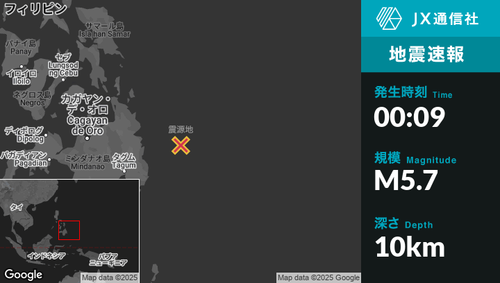 | 震源地 | フィリピンのBarcelonaから東130kmの地点 |