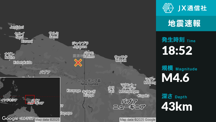 | 震源地 | インドネシアのAbepuraから南96kmの地点 |