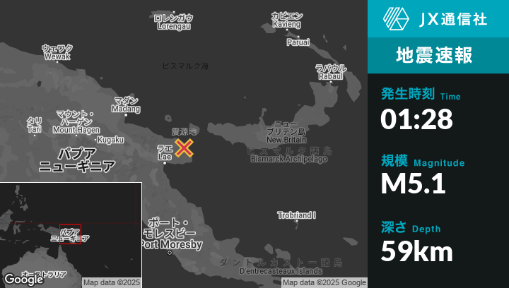 | 震源地 | パプアニューギニアのFinschhafenから北北西55kmの地点 |
