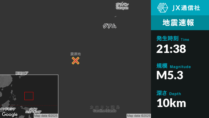 | 震源地 | ミクロネシアのFaisから北東228kmの地点 |