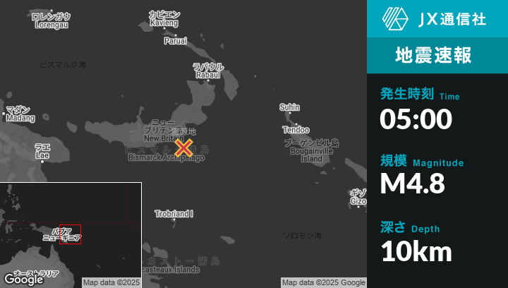 | 震源地 | パプアニューギニアのKimbeから東南東154kmの地点 |