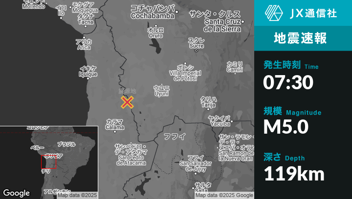 | 震源地 | チリのOllagüeから北西18kmの地点 |