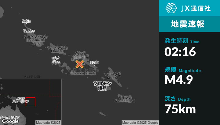 | 震源地 | ソロモン諸島のBualaから西119kmの地点 |