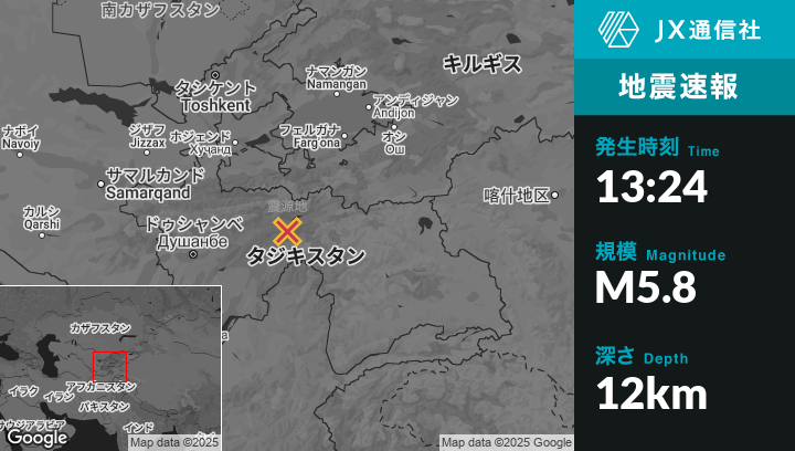 | 震源地 | タジキスタンのRashtから東25kmの地点 |