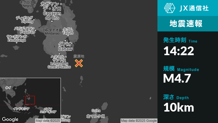 | 震源地 | フィリピンのPondaguitanから南南東99kmの地点 |