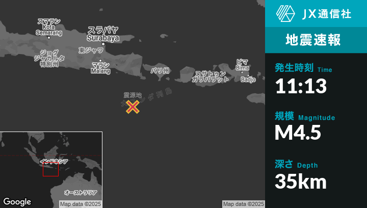 | 震源地 | インドネシアのMuncarから南南西156kmの地点 |