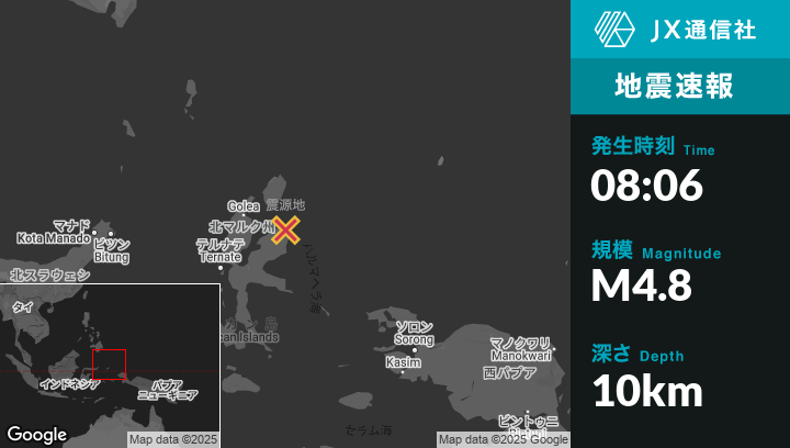 | 震源地 | インドネシアのTobeloから東74kmの地点 |