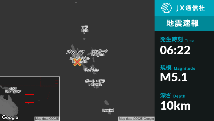 | 震源地 | バヌアツのLuganvilleから南南西39kmの地点 |