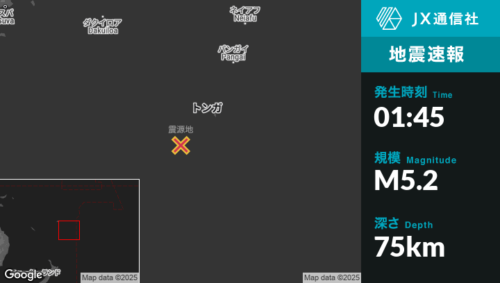 | 震源地 | トンガのHoumaから南西131kmの地点 |