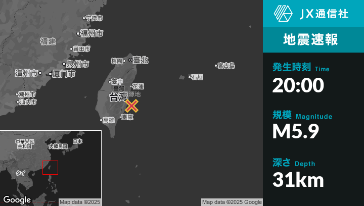 | 震源地 | 台湾のHualien Cityから南71kmの地点 |