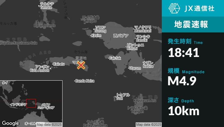 | 震源地 | インドネシアのMasohiから東151kmの地点 |