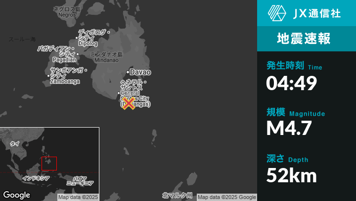 | 震源地 | フィリピンのCaburanから南12kmの地点 |
