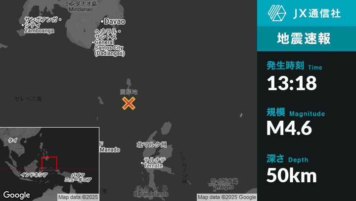 | 震源地 | インドネシアのTobeloから北西244kmの地点 |