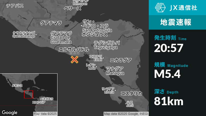 | 震源地 | エルサルバドルのPuerto El Triunfoから南21kmの地点 |