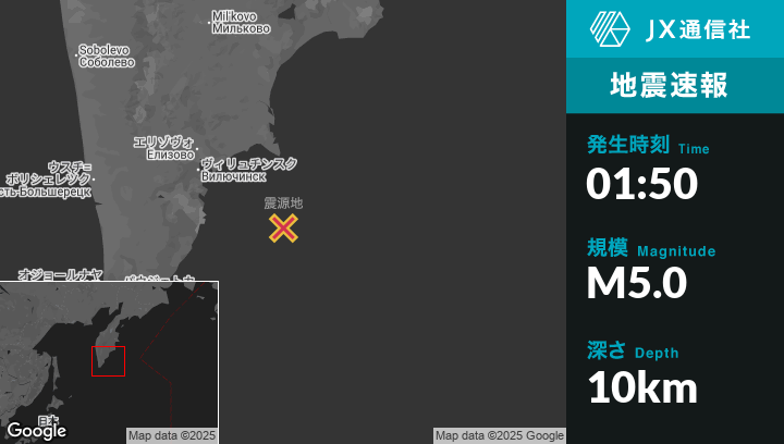 | 震源地 | ロシアのPetropavlovsk-Kamchatskyから南東131kmの地点 |