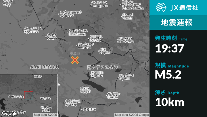 | 震源地 | カザフスタンのAsubulakから西南西45kmの地点 |