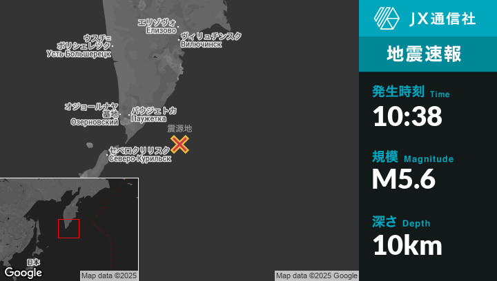 | 震源地 | ロシアのOzernovskiyから東南東146kmの地点 |