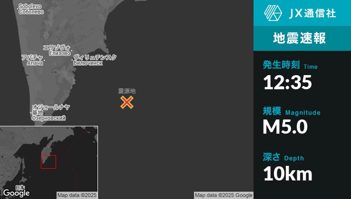 | 震源地 | ロシアのPetropavlovsk-Kamchatskyから南東203kmの地点 |