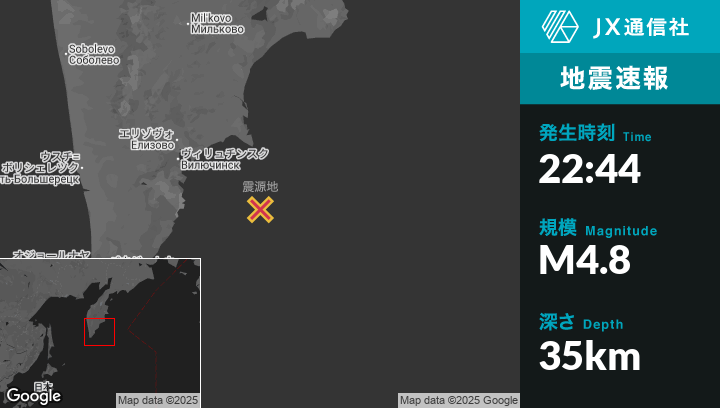 | 震源地 | ロシアのPetropavlovsk-Kamchatskyから南東133kmの地点 |