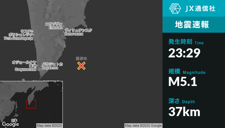 | 震源地 | ロシアのVilyuchinskから南南東173kmの地点 |