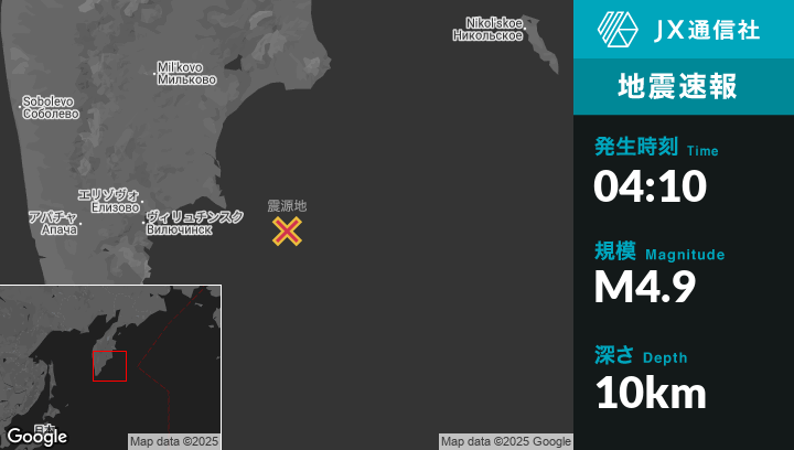 | 震源地 | ロシアのPetropavlovsk-Kamchatskyから東177kmの地点 |
