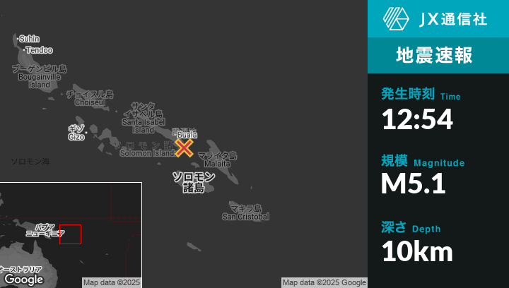 | 震源地 | ソロモン諸島のBualaから南東46kmの地点 |