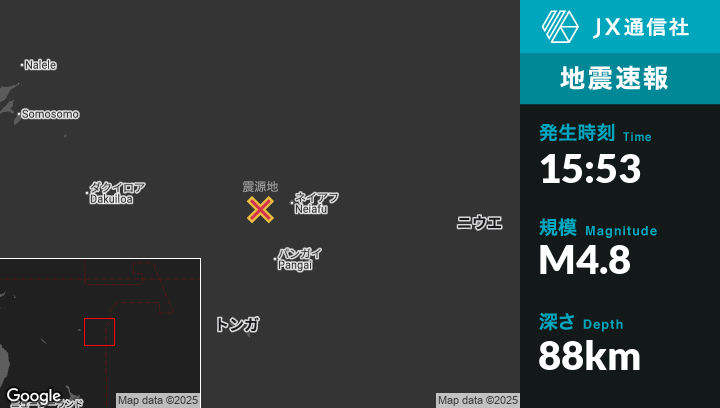 | 震源地 | トンガのNeiafuから西74kmの地点 |