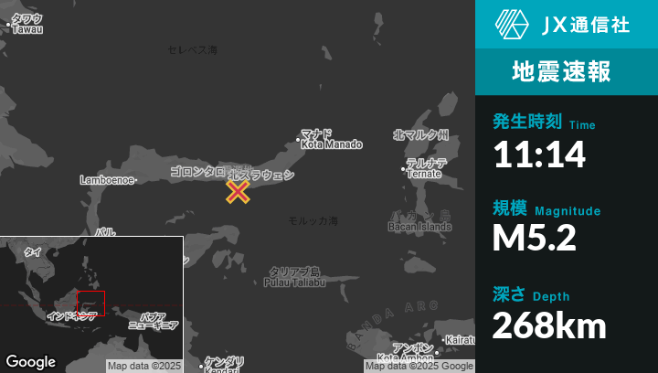 | 震源地 | インドネシアのGorontaloから東南東42kmの地点 |