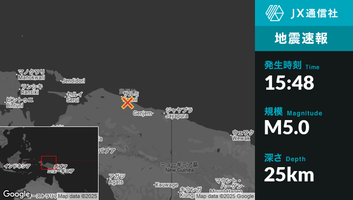 | 震源地 | インドネシアのAbepuraから西北西191kmの地点 |