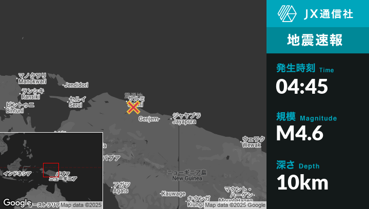 | 震源地 | インドネシアのAbepuraから西北西188kmの地点 |