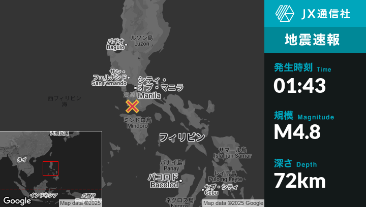 | 震源地 | フィリピンのSinisianから北2kmの地点 |