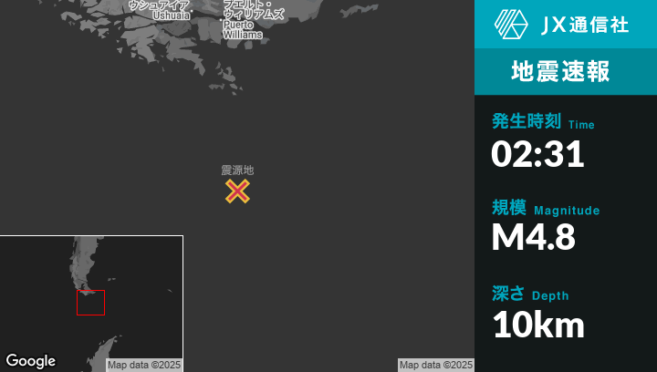 | 震源地 | アルゼンチンのUshuaiaから南南東272kmの地点 |