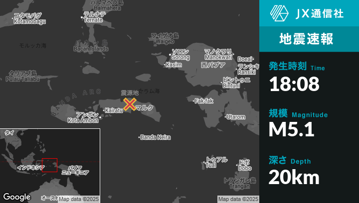| 震源地 | インドネシアのMasohiから北東69kmの地点 |