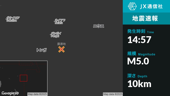 | 震源地 | トンガのPangaiから南東168kmの地点 |