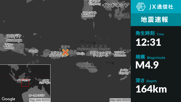 | 震源地 | インドネシアのDompuから西北西52kmの地点 |
