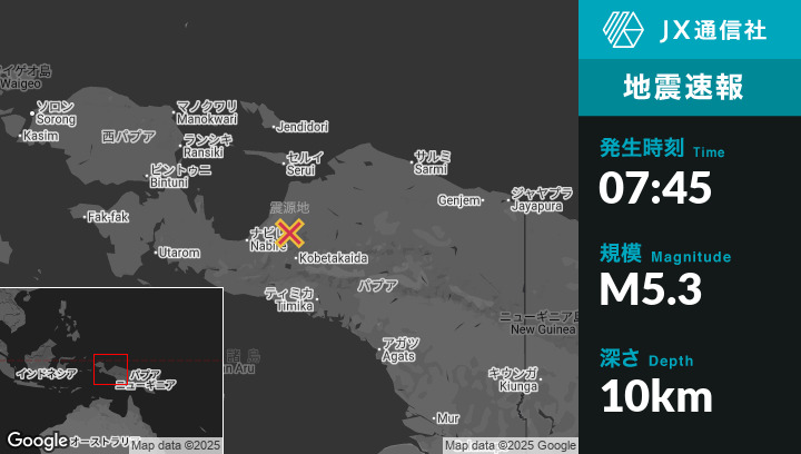 | 震源地 | インドネシアのNabireから東北東97kmの地点 |