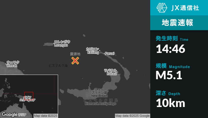 | 震源地 | パプアニューギニアのKaviengから西南西219kmの地点 |