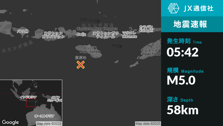 | 震源地 | インドネシアのTambolakaから南132kmの地点 |