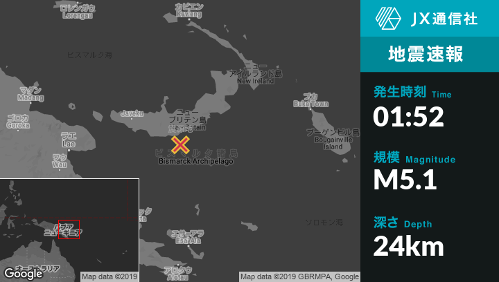 | 震源地 | パプアニューギニアのKimbeから南南東106kmの地点 |