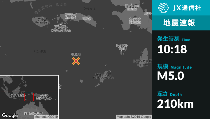 | 震源地 | インドネシアのSaumlakiから北西286kmの地点 |