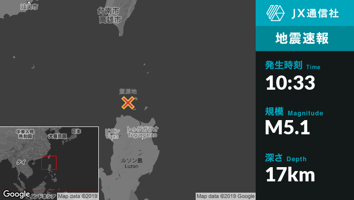 | 震源地 | フィリピンのClaveriaから北73kmの地点 |