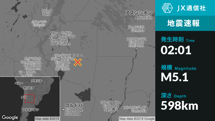 | 震源地 | アルゼンチンのAnatuyaから北西37kmの地点 |