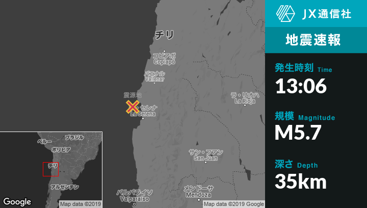| 震源地 | チリのCoquimboから北北西74kmの地点 |